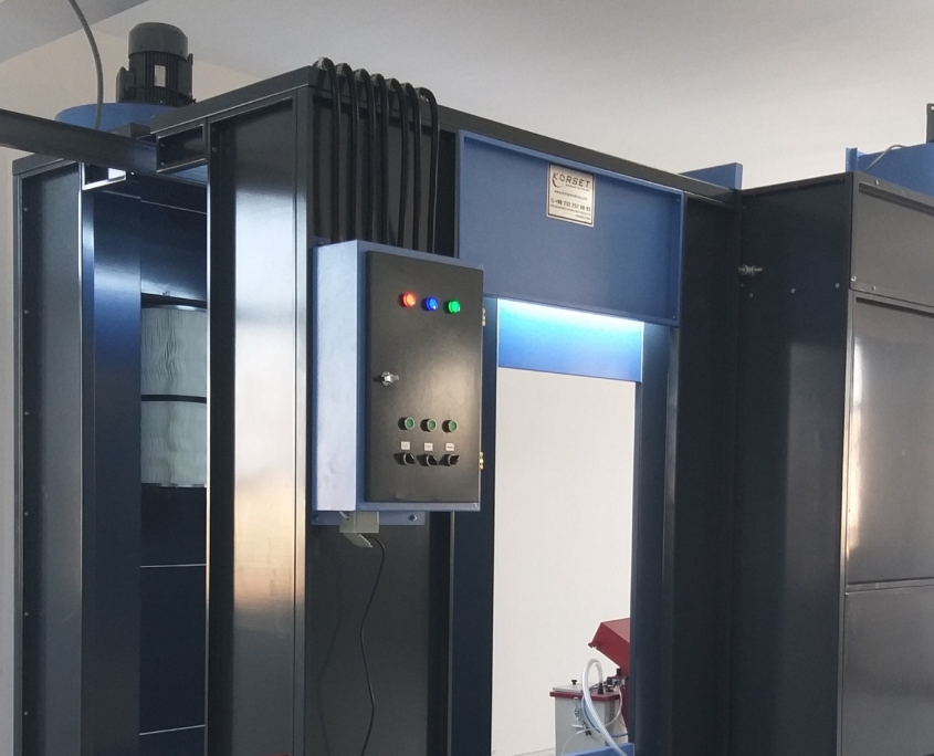As Korset Makina, we produce manual and automatic powder coating booths by prioritizing high efficiency and quality. Our cabins are designed to meet the highest standards in terms of both paint saving and human health. The structure, which prevents the paint from leaving the cabin during production, ensures environmental cleanliness and safety during the painting process.